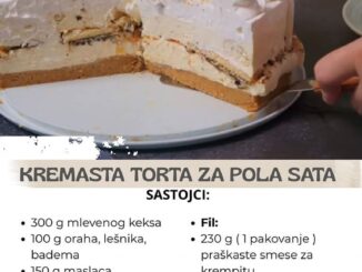 Jutjub kanal “Aurora recepti”, objavio je recept za Dinastija tortu za sve prilike. Sastojci: Kora: 10 belanaca 10 kašika šećera 2 kesice(18g) vanil šećera 1 kašičica praška za pecivo 7 kašika brašna 200 g seckanih […]
